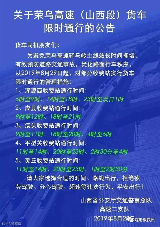 紧急!关于荣乌高速(山西段)货车限时通行公告