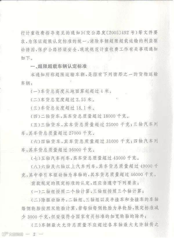 本通知所称超限运输车辆,是指有下列情形之一的货物运输车辆: