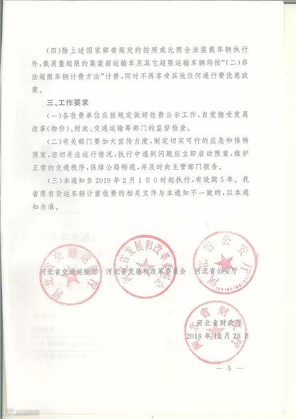 本通知自2019年2月1日0时起执行,有效期5年。我省原有货运车辆计重收费的相关文件与本通知不一致的,以本通知为准。