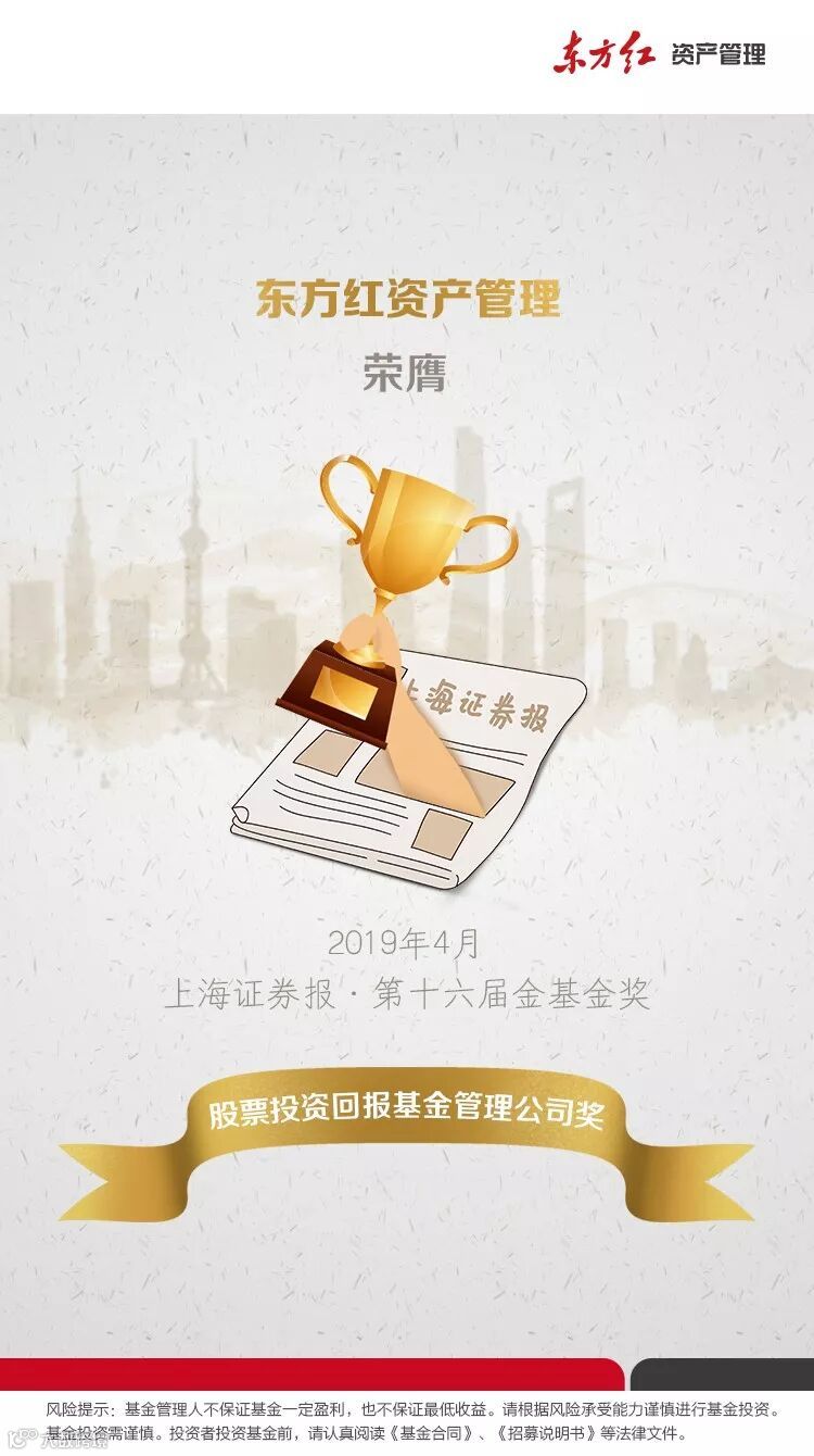在第十六届中国“金基金”奖评选中,东方红资产管理荣获“金基金•股票投资回报基金管理公司”奖。