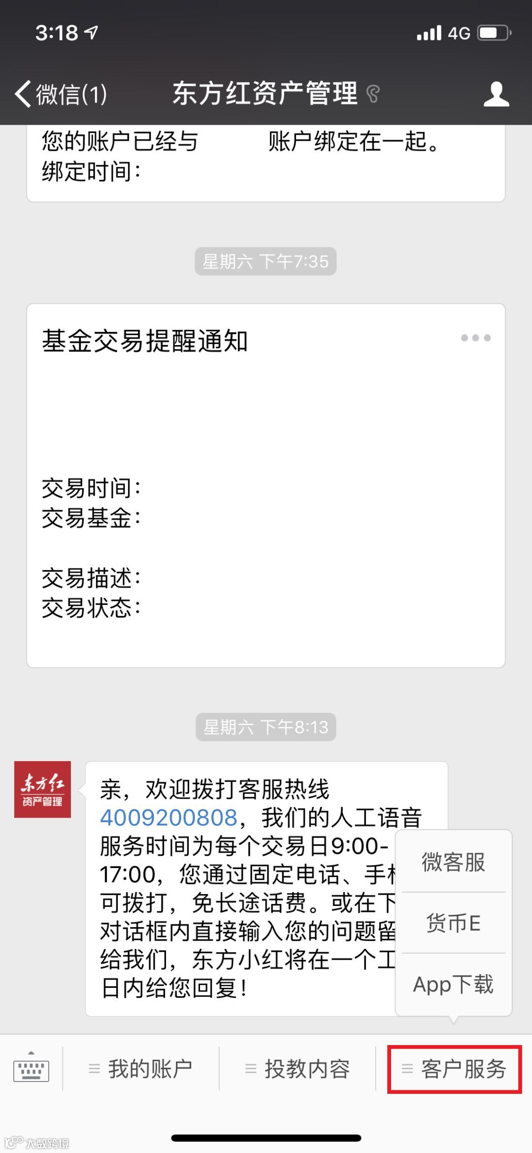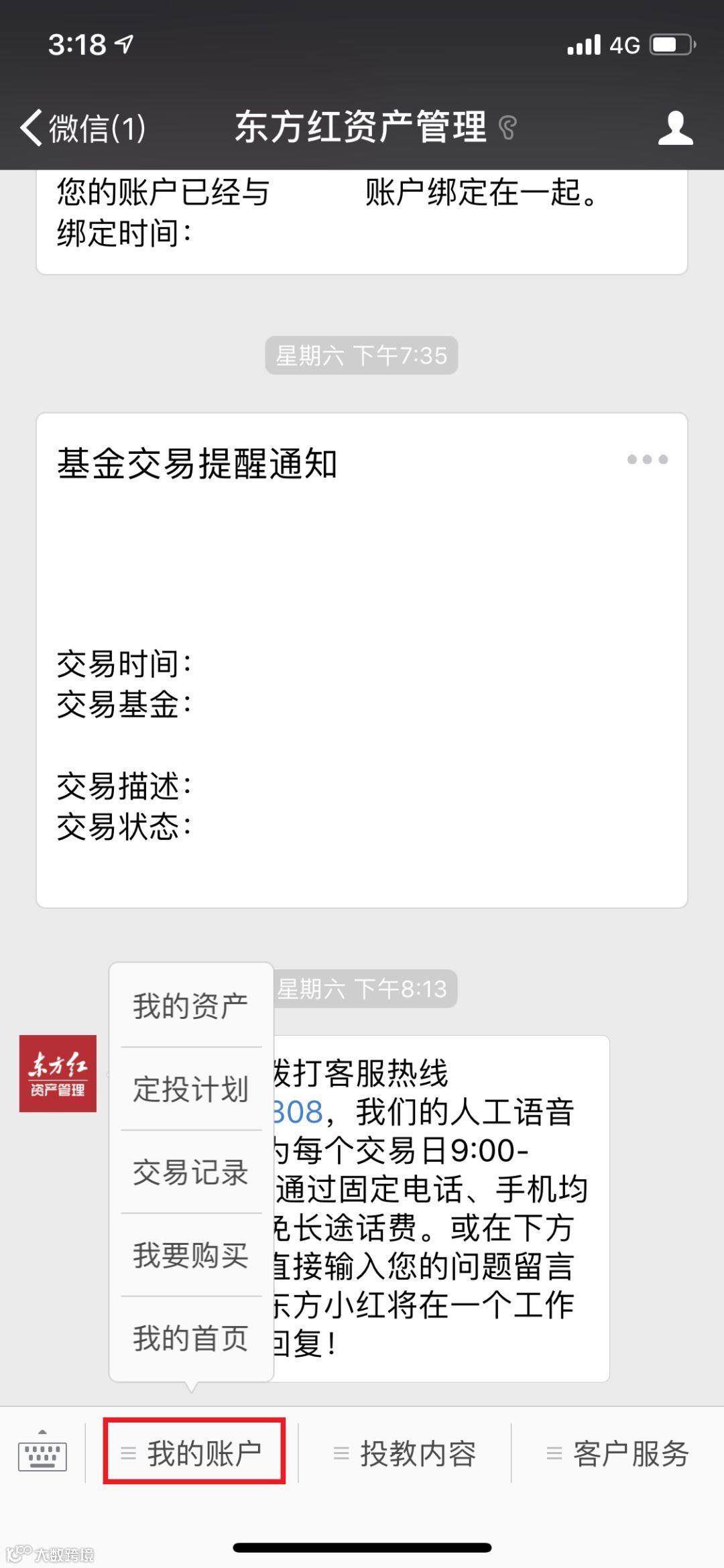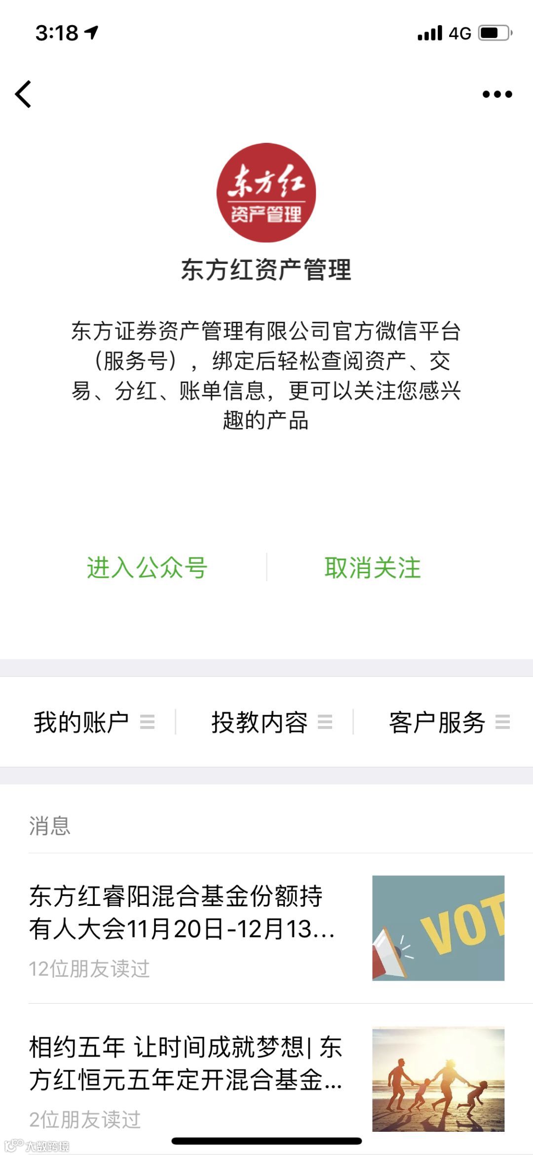 本次“东方红资产管理”服务号升级,对三个主栏目进行了重新规划,您可以进入服务号下方的栏目查询您的账户,观看投资者教育内容,更便捷地享受客户服务。