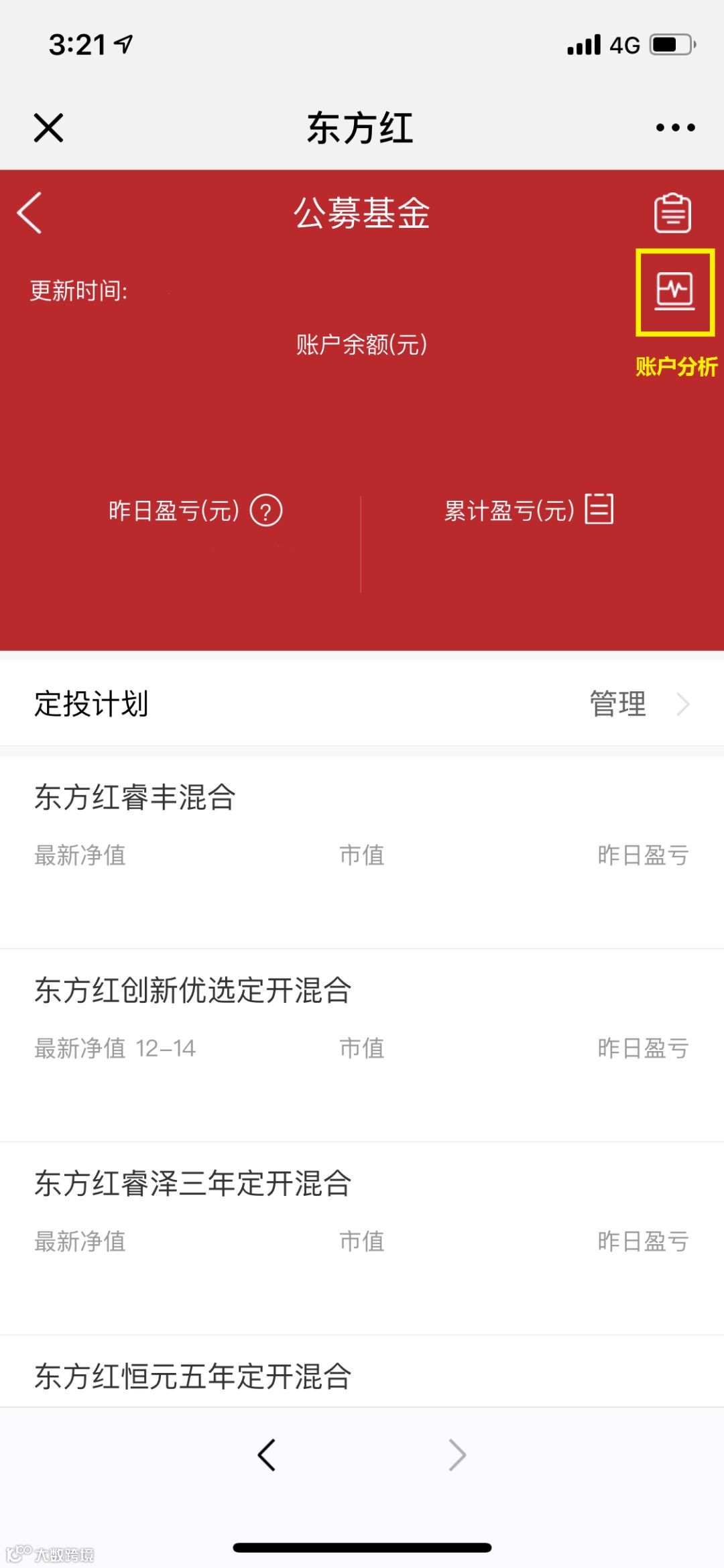 打开微信,搜索“东方红资产管理”或“dfh_zcgl”,点击关注进入东方红资产管理服务号。