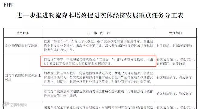 《方案》要求:取消取消总质量4.5吨及以下普通货运车辆营运证及从业资格证。