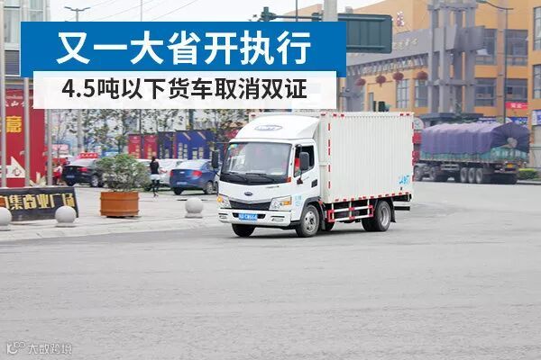 2017年11月1日,河北省全国首个将4.5吨及以下车辆营运证、资格证取消。