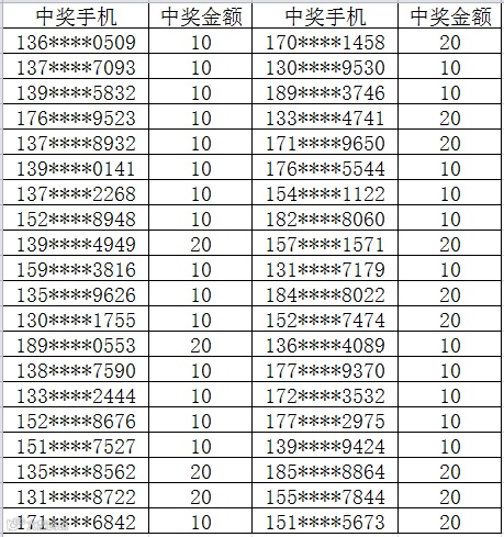 3、中奖金额将于每周五以话费的形式发放到您的中奖手机,届时敬请留意短信