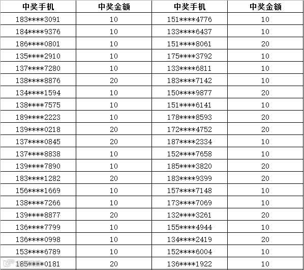 3、中奖金额将于每周五以话费的形式发放到您的中奖手机,届时敬请留意短信