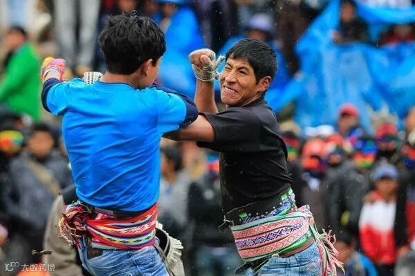 每逢新年,秘鲁市场便成了黄颜色商品的天下。最具代表性的就是黄色内裤。秘鲁人不分男女老少都会买上一条穿在身上,期望借此拥有“贴身”的幸运。不仅如此,秘鲁人还用拳头迎接新年。在秘鲁的库斯科市每年都会举行“打架比赛”。只要有胆量,无论男女老少,都可以上场和对手比拼一番。选手之间并没有深仇大恨,甚至彼此都不认识,人们打来打去就是为了将一年中积攒的怒气发泄出来,怀着一颗充满欢乐和希望的心情步入新的一年。虽然是拳脚相加的场合,现场播放的音乐却是喜庆的。