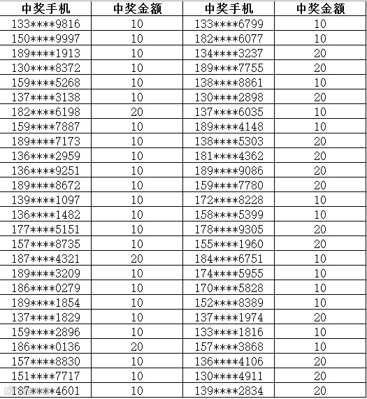3、中奖金额将于每周五以话费的形式发放到您的中奖手机,届时敬请留意短信