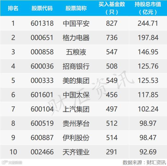 上半年累计买入最多的股票为中国平安,买入的基金多达827只。格力电器、五粮液也受到基金经理的青睐。