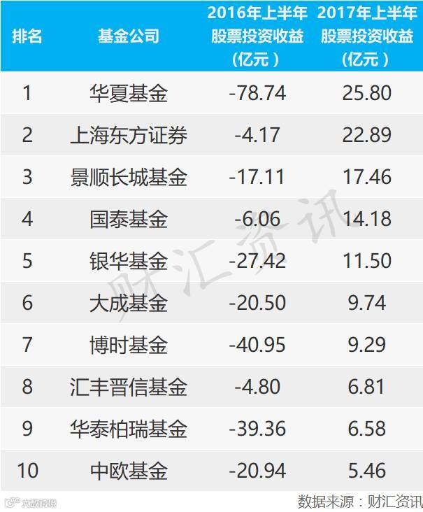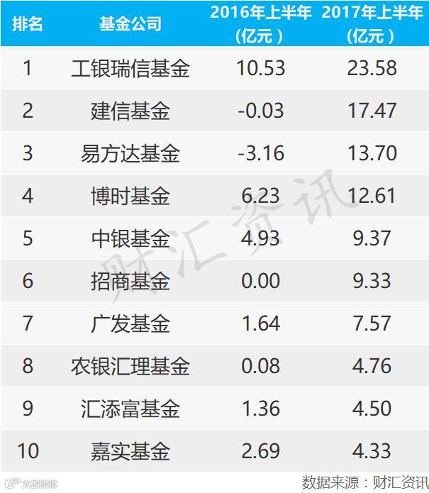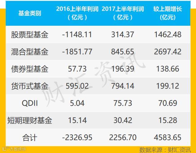 根据已披露中报数据统计,2017年上半年公募基金共实现利润超过2256亿元, 相比于2016年上半年亏损2327亿元,2017年上半年实现了扭亏为盈。财汇数据多方面统计挖掘了相关数据,为您一一解读: