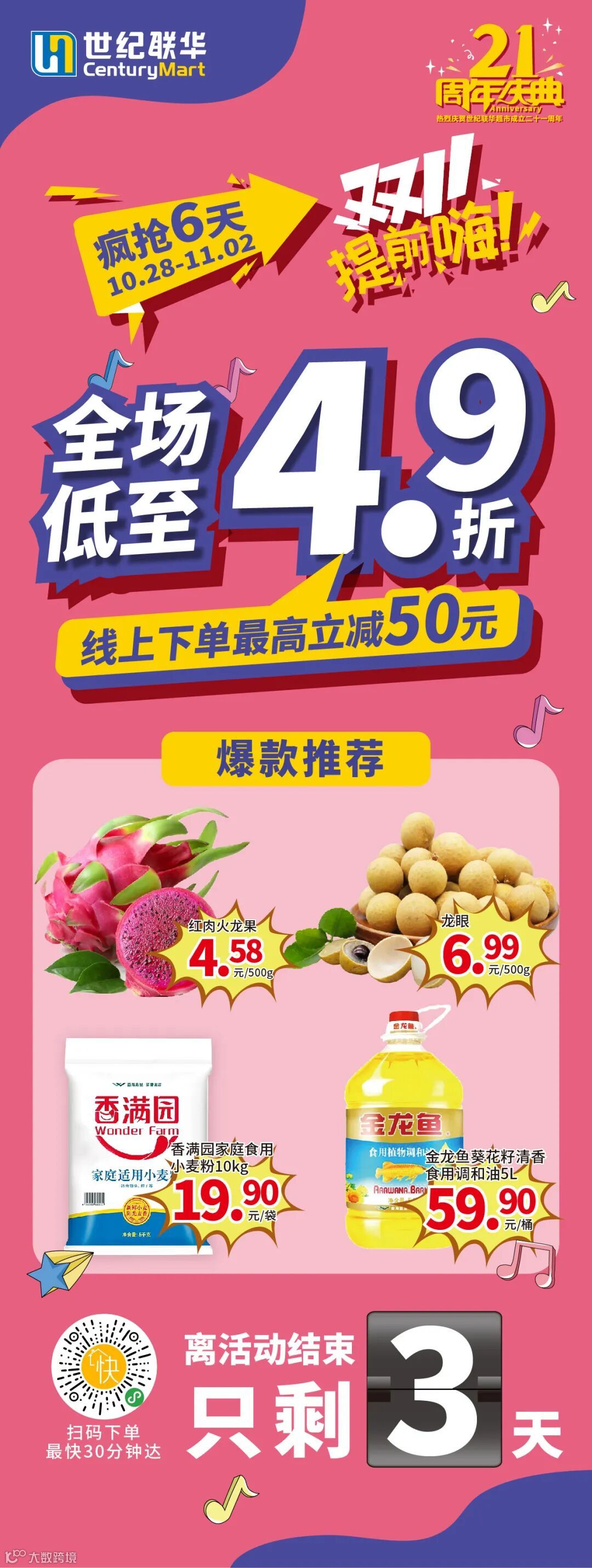 仅剩最后三天丨双11提前嗨!全场低至4.9折!线上最高立减50!冲冲冲!