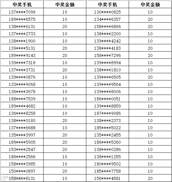 3、中奖金额将于每周五以话费的形式发放到您的中奖手机,届时敬请留意短信