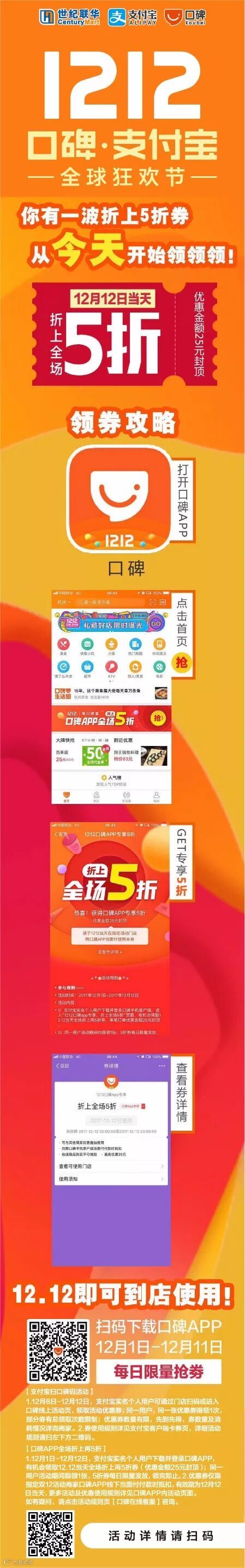 1、支付宝扫口碑二维码领取专享价优惠券↓