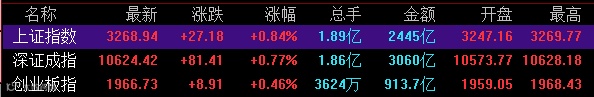 我们先来看一看市场的反映,沪深两市双双高开后,大盘全天窄幅波动。沪指收涨0.84%,收创3个月高位;深成指收涨0.77%,创业板收涨0.46%。券商、次新股板块站上风口。