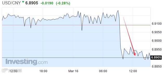 今日人民币兑美元中间价报6.8862,上调253点,上调幅度创近两个月最大。在岸人民币对美元报6.8905,日内一度涨0.28%,创一个月最大涨幅;上日收报6.9135。