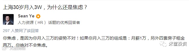 上文回答的精彩之处在于,准确指出了:月薪三万却感觉焦虑的原因是收入的姿势不对。