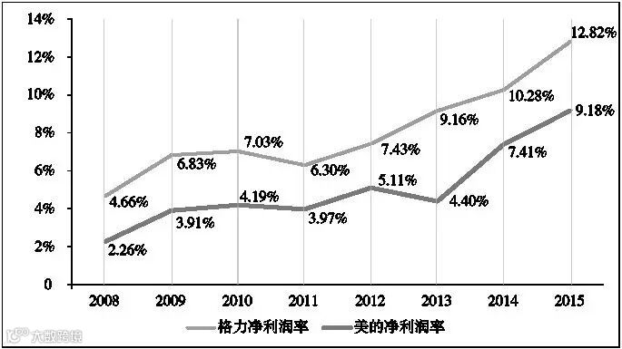 第二,高利润率。正是因为有核心技术,所以格力的利润率很高。在传统家电领域,格力毛利润率能达到 30%~35%,净利率 10%左右。而中国企业联合会发布的中国制造业 500 强的平均利润率,2013 年为 2.23%,2014 年为 2.7%,格力遥遥领先。即使和美的相比,格力的净利润也是一直高于美的 2~3 个百分点。