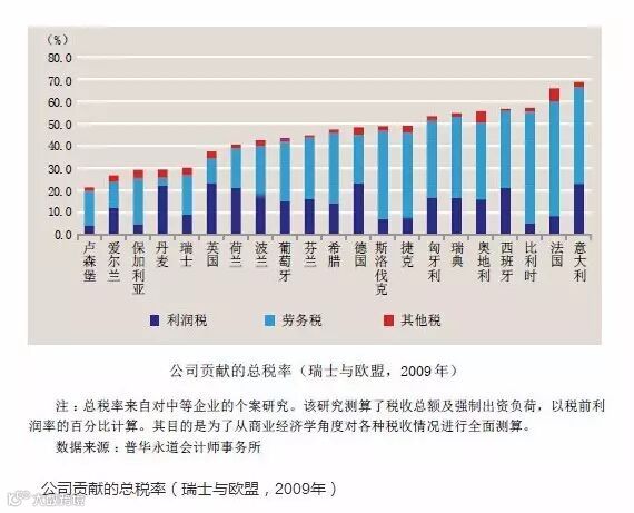 事实是,瑞士许多州的企业和个人所得税率都相对较低。目前,瑞士公司的所得税保持在12.5%~24%之间,相比之下,英国的为28%,而美国的为15%~35%。将瑞士联邦和各州税率结合在一起的个人所得税则和大多数欧洲国家以及美国大致相似。瑞士的增值税为8%,而许多西欧国家则为20%左右。一些专家表示,瑞士税收征管和支出权被层层下放直至基层,政府高度放权刺激了区域竞争并导致了税率较低。批评者认为,这无异于一种“贫邻政策”,即以别的州和国家损失税收为代价让自己获益。