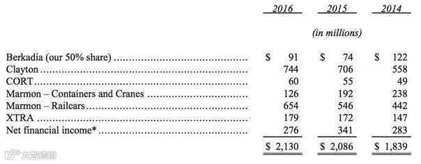 目前,我们公司的租赁和租借业务是由CORT公司(负责家具租赁业务)、XTRA公司(负责半自动拖车租赁业务)以及Marmon公司(主要负责油罐车、货车、联运罐式集装箱和起重机租赁服务)具体运营。这三家公司每一个都是各自细分领域内的龙头企业。