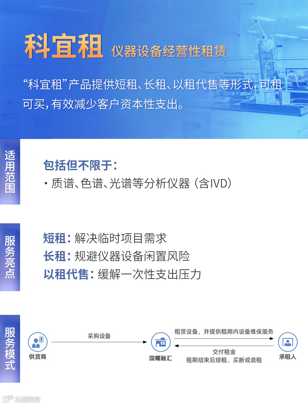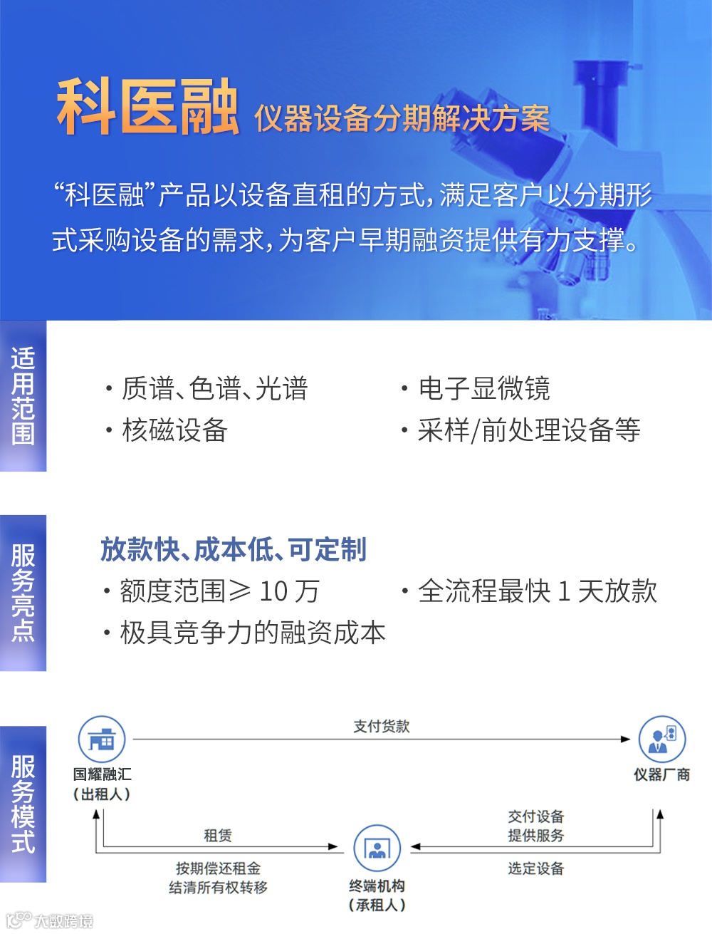 国耀融汇“科医融”产品,以优惠分期形式解决实验室行业客户的设备购置需求,有效帮助企业解决在关键节点的设备资金问题。