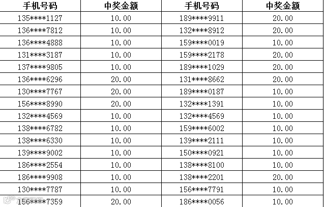 3、中奖金额将于每周五以话费的形式发放到您的中奖手机,届时敬请留意短信
