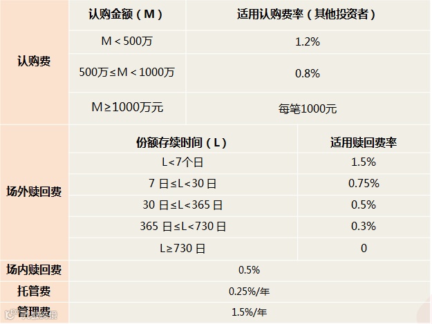 注:以上认购费率为其他投资者。投资人可通过场内和场外两种方式认购本基金,场内认购采用份额认购方式,场外认购采用金额认购的方式,场内场外认购费率相同。