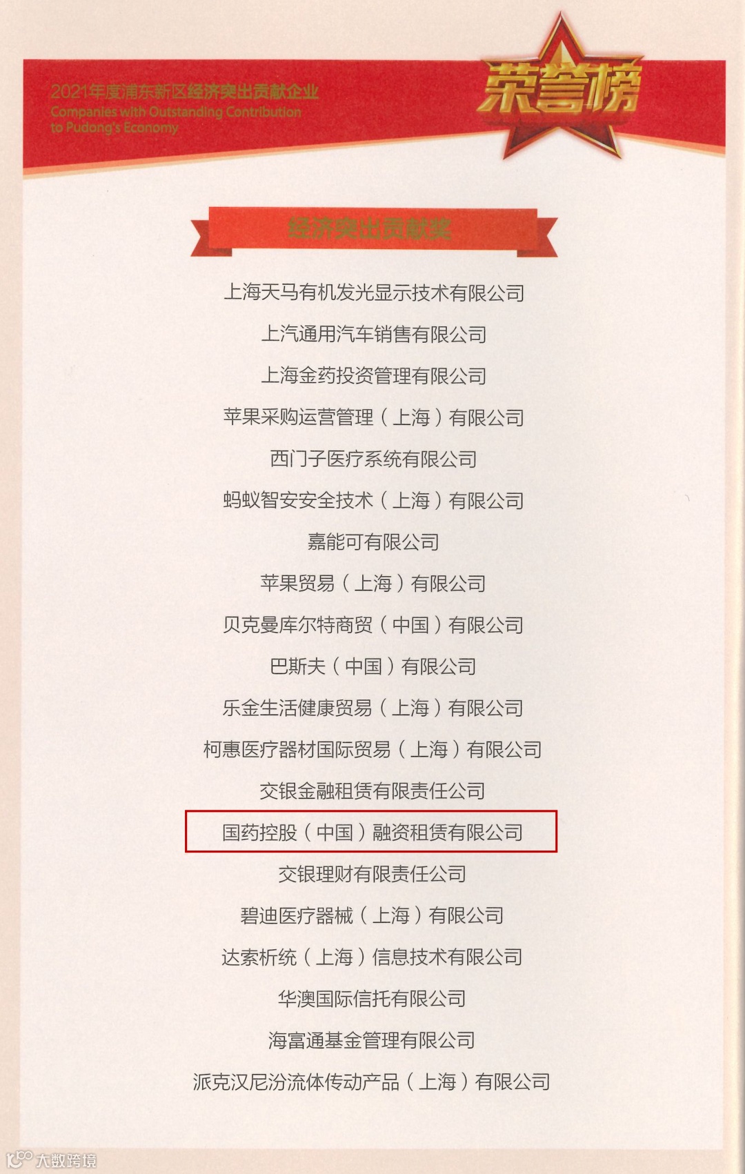 11月23日,上海市浦东新区举行“2022年经济突出贡献企业表彰活动”,向为浦东改革创新和经济社会发展作出卓越贡献的企业颁发奖项。国药控股(中国)融资租赁有限公司荣获“2021年度浦东新区经济突出贡献奖”,自成立以来,公司已连续三年荣获殊荣。公司财务总监陆雯伊出席活动并代表公司领奖。