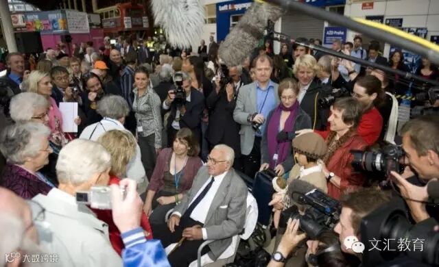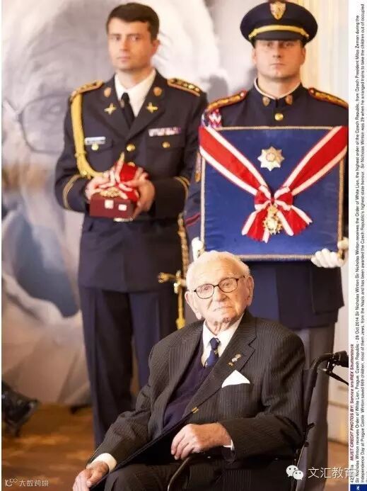 捷克派遣军用飞机专程将老人接到布拉格,在七位“温顿儿童”的陪同下,接受总统亲自授予的捷克最高荣誉“白狮勋章”。