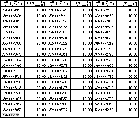 3、中奖金额将于每周五以话费的形式发放到您的中奖手机,届时敬请留意短信