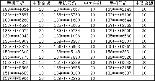 3、中奖金额将于每周五以话费的形式发放到您的中奖手机,届时敬请留意短信