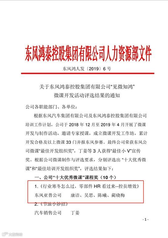 在东风鸿泰“见微知鸿”微课开发活动评选中