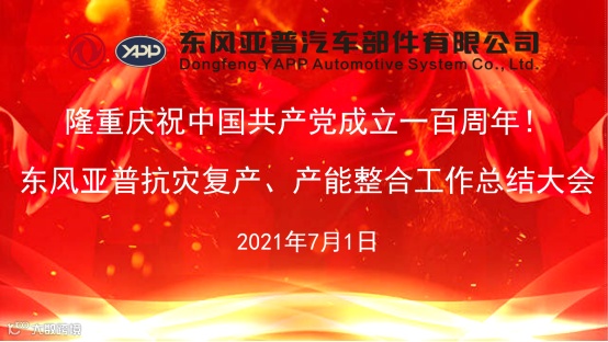 7月1日,东风亚普召开抗灾复产、产能整合工作总结大会。会议总结公司在抗灾复产和产能整合工作的宝贵经验,表彰抗灾复产先进个人,弘扬抗灾复产精神,以更高昂的斗志推动公司在新的起点、以新的思路、开启新的征程。公司总经理邹志东、党总支书记兼副总经理唐志成、各部门负责人、主管及部分员工代表参加了会议。唐志成主持会议。