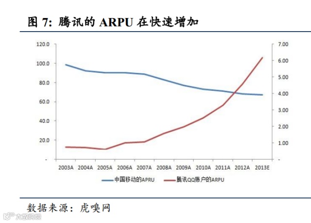 腾讯体现出了梅特卡夫定律的魔力。随着用户数的增长,每个用户的价值也在增加。这使得腾讯的盈利能力以更快的速度增加。