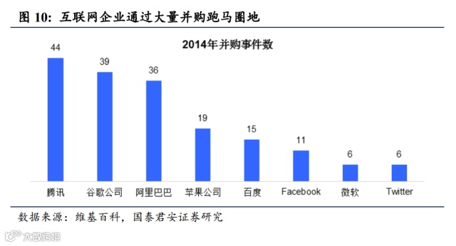 国内互联网其实也在重复上演同样的故事。国内互联网创业圈中一个相对默契的目标就是被TABLE(腾讯,阿里,百度,小米和奇虎)收购,隐含的逻辑亦是如此。由于这种规模效应,收购方和被收购方取得共赢。收购方往往愿意支付一个较高的溢价。