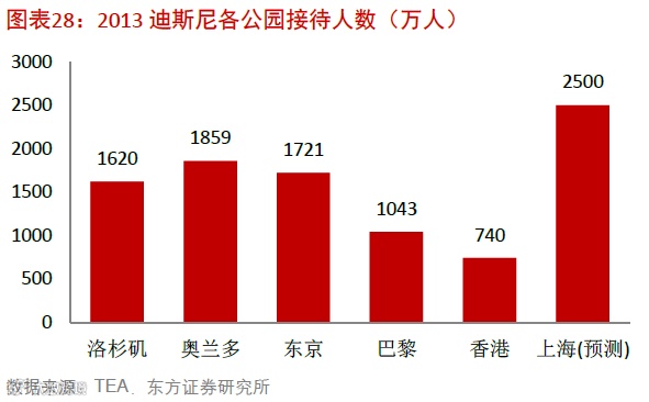比较东京,无论从区位优势还是经济潜力,上海都是有过之而无不及。鉴于之前世博会7000万人远超预期的情况,我们预计上海迪斯尼的参观人数首年将达到2500万人次,这一数字将使得上海迪斯尼超越东京,成为世界上接待人数最多的迪斯尼乐园。