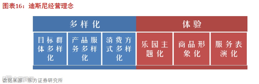 迪斯尼经营的本质是多样化经营和体验经济。我们回顾迪斯尼在本土及海外的拓展路径后,发现迪斯尼之所以取得成功的原因是因为其对于消费概念的深刻领悟,通过主题化的乐园、形象化的商品、表演化的服务,增进消费者的体验,延长消费者逗留的时间;通过多样化的产品,混合消费的模式增进消费者消费的可能。