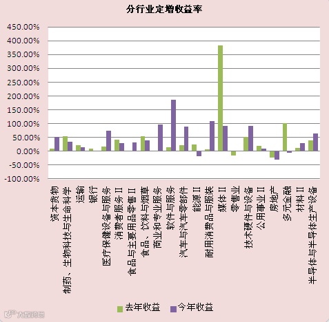 通过最近1年多定增收益率统计(2013年1月1日到2014年7月18日),只有极少数的行业,如能源II、零售业和房地产行业等平均收益率出现负值,其他行业都具有很可观的收益。其中媒体II行业一直引领市场,从2010年至今一直保持最高投资回报率。