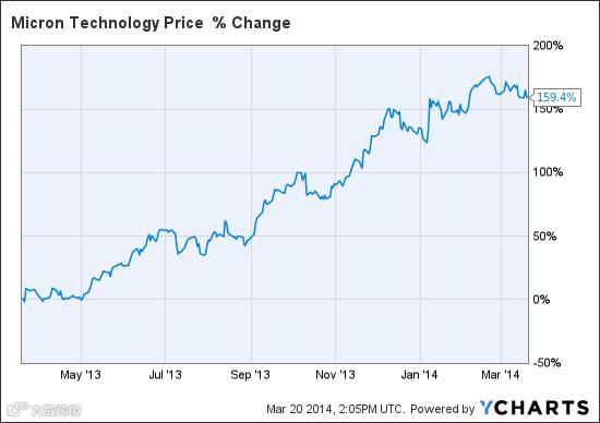 2013年11月另一位对冲基金大佬David Einhorn(以德州扑克专业级水平闻名)被爆正在建仓Micron,这件事闹得沸沸扬扬,其实早在他之前,著名的价值投资者Seth Klarman就已经出手了,而且是大手笔。截止去年底,该股票已经占他组合的32%,占该公司流通股的5.8%。David Einhorn截止去年底对该公司的投资占组合14.6%。交易数据显示,Seth Klarman去年四季度减仓操作,从毕竟去年至今该股已经上涨159%,我们有理由相信他需要对仓位进行管理。