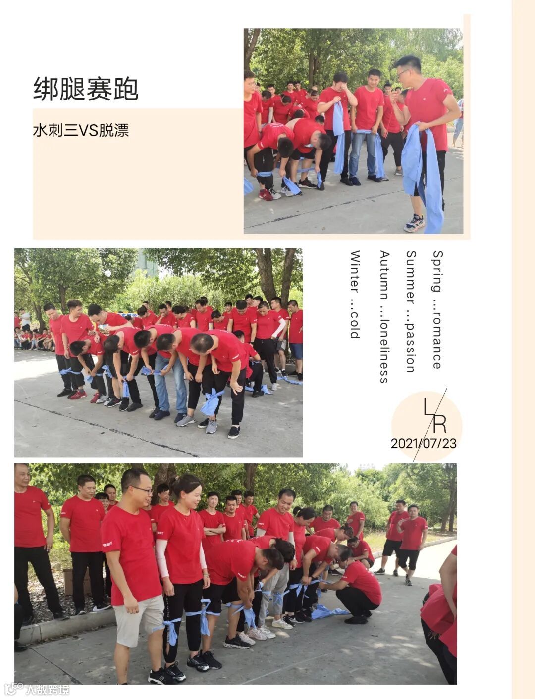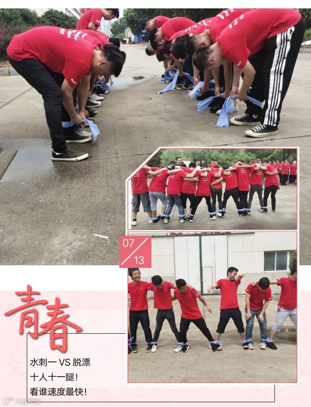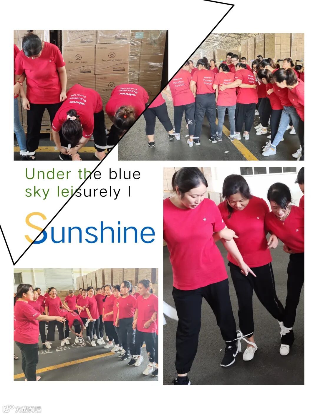 一位组员摔倒时,则全体都会摔倒,此次比赛中每个人心连心,肩并肩,齐心协力到达终点。这就是对团队最好诠释!