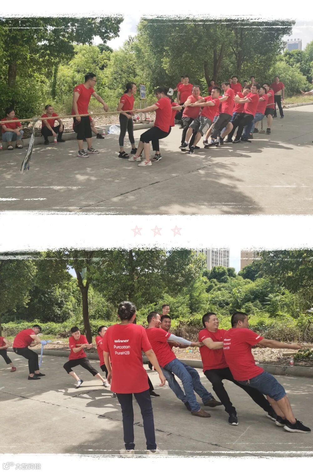 员工们在旁边为自己的队伍加油呐喊着,每个人都恨不得抓起绳子跟选手一起努力,使得整个场面既激烈又温馨。