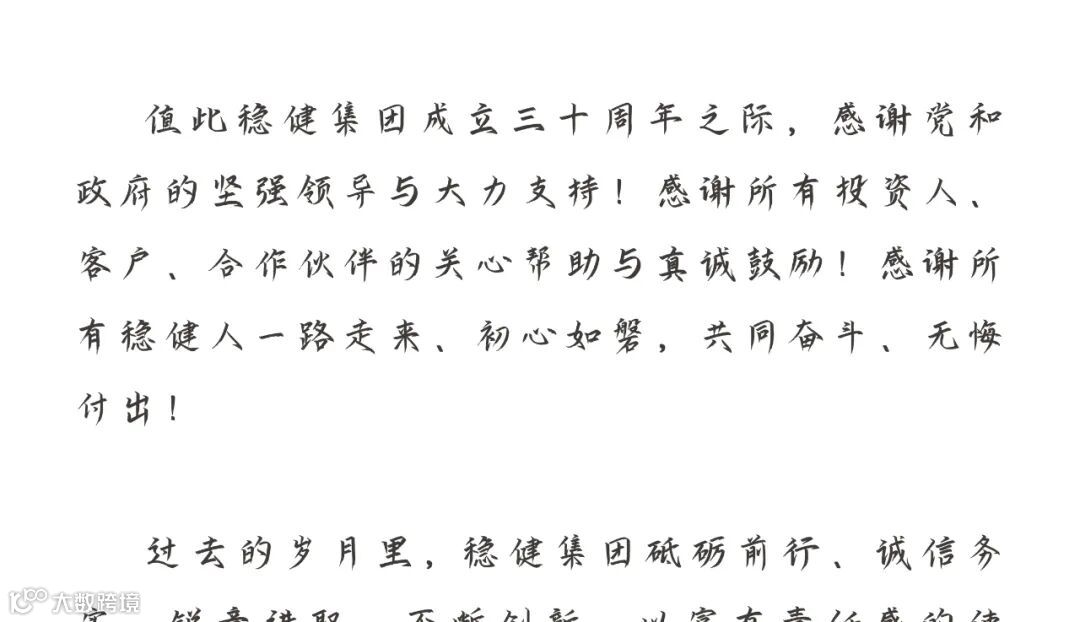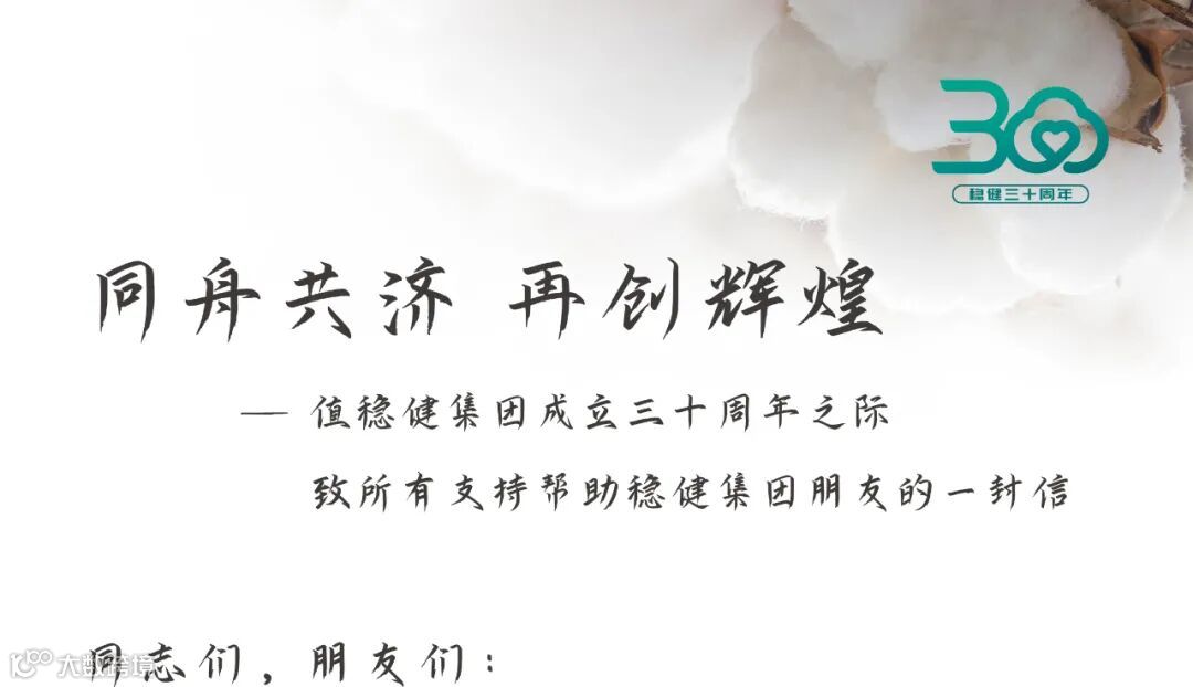 值三十周年之际,稳健集团发布致所有支持帮助稳健朋友的一封信,全文如下: