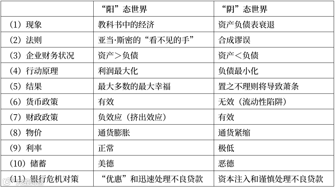假如政府不通过财政扩张将私营部门过剩的储蓄重新导入收入循环中,“看不见的手”就会把经济推入恶性循环通货紧缩的泥沼,一直到私营部门财务状况恶化到再也无钱储蓄,或者将巨额债务还清为止。只要私营部门的债务问题不解决,经济就永远无法回归到“阳”态阶段。