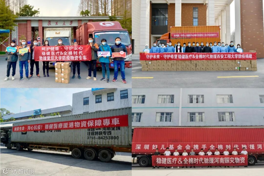 在各地疫情反复、四川泸定地震、河南暴雨等突发事件来临时,稳健医疗及全棉时代积极响应,第一时间向全国各地的医院、社区、高校等捐赠了价值过亿元的医疗防疫及生活保障物资,守护一线抗疫战士,解决群众的燃眉之急。与此同时,积极参与妇女儿童关爱行动,充分履行社会责任,践行企业价值观。