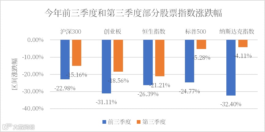 今年三季度市场持续走弱,其中,沪深300指数下跌15.16%、创业板指数下跌18.56%、恒生指数下跌21.21%,这一轮的下跌主要和美联储加息超预期、俄乌冲突持续、国内经济放缓等因素有关,但是,不论是美联储加息、俄乌冲突,还是国内经济,市场已经反应较为充分,年内沪深两市成交额创新低、部分重要指数PE处于历史极低分位,当下的市场到了比较明确的底部区域。