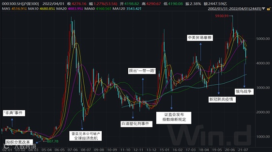 (图一:沪深300指数及代表事件)