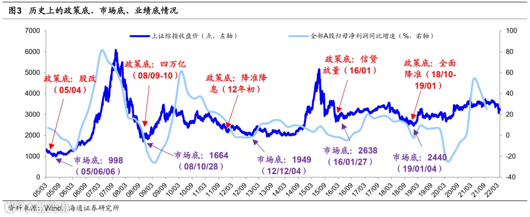 (图三:历史上的政策底、市场底、业绩底情况)