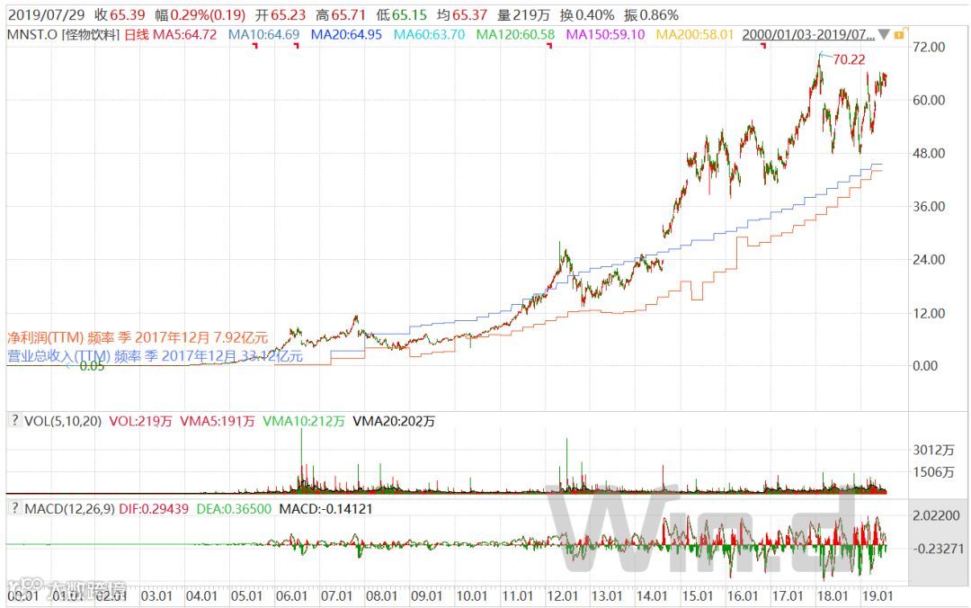 怪物饮料,股价涨幅71倍!
