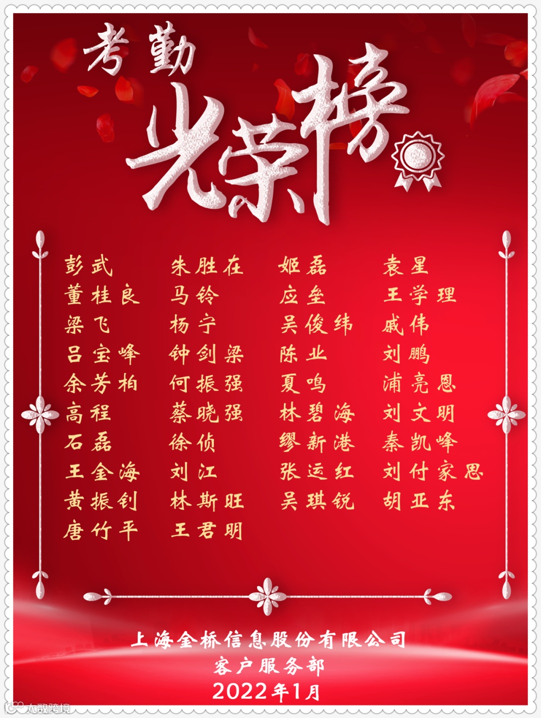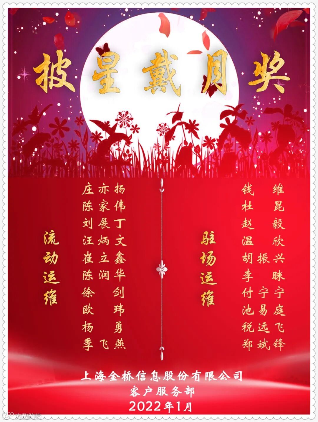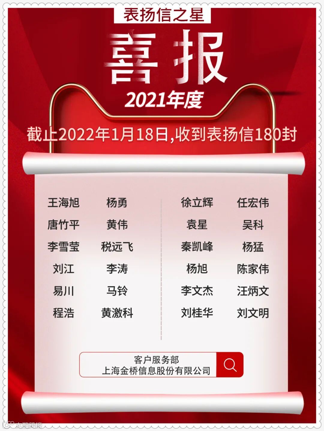 ~~~就在刚刚,金桥信息全国运维服务年终奖励2021年云典礼在“云端”火热进行。总结工作、表彰杰出、颁发荣誉,当然也不能忘记抢红包这种大事!就是这么嗨~~~