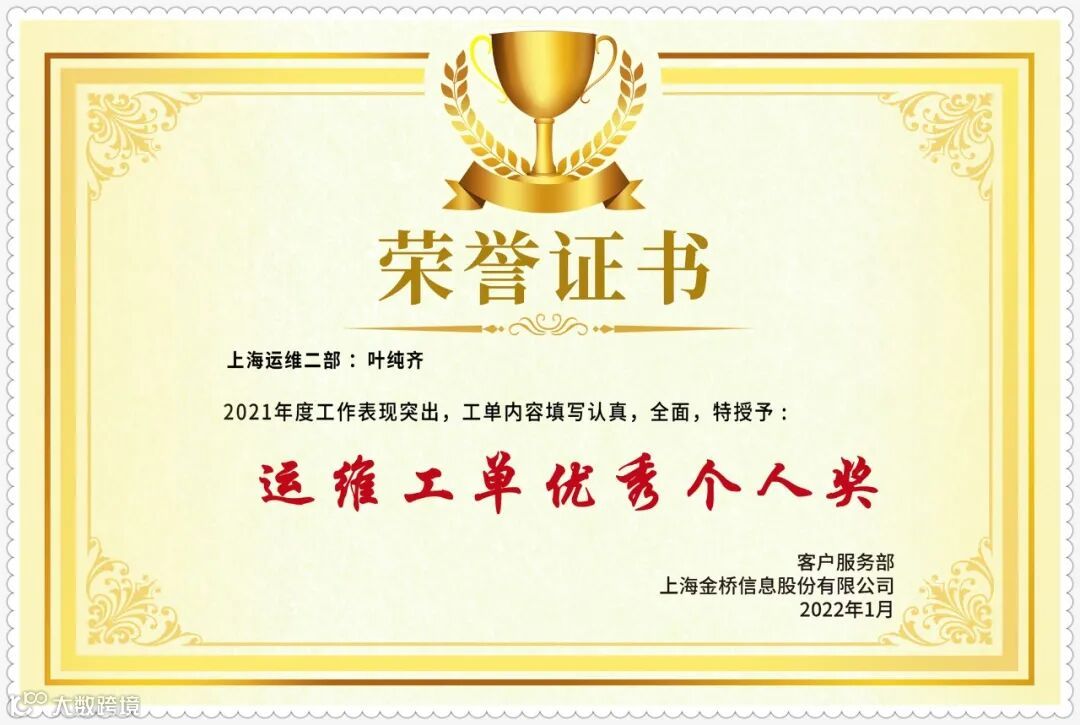 运维工单优秀个人奖