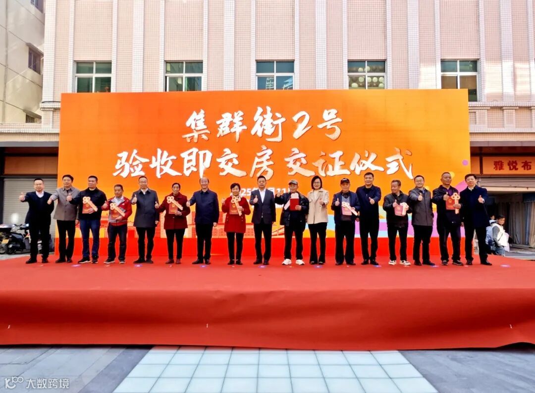 2025年1月11日,广州花都集群街2号。8名业主代表满怀激动地从领导嘉宾手中接过红色不动产权证书和金色钥匙。镜头定格的瞬间,记录下历史性的一刻——这是广东省首例业主“自筹资金、原拆原建”危旧房改造项目,一个为全国城市更新实践提供鲜活经验的“广州样本”。